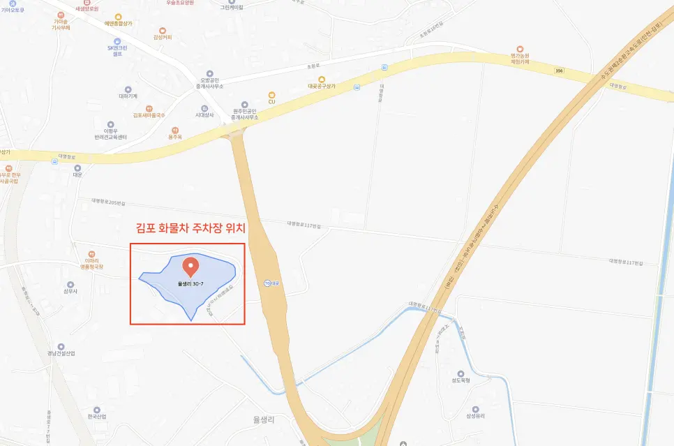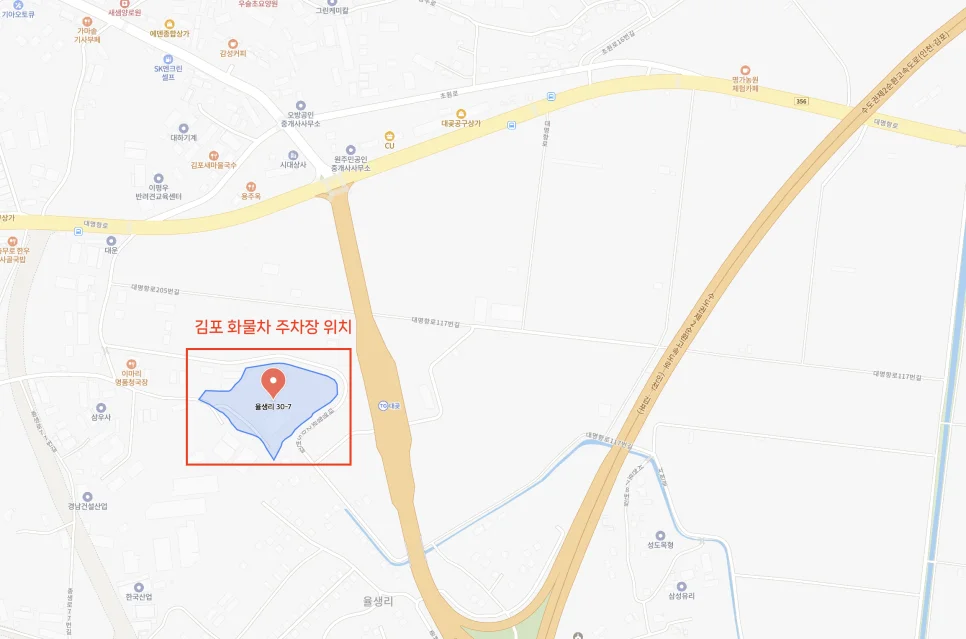 율생리 주차장의 위치는 김포에서 화물차 운행하시는 분들한테 정말 유리합니다. 주요 거점들과의 접근성이 뛰어나기 때문입니다.